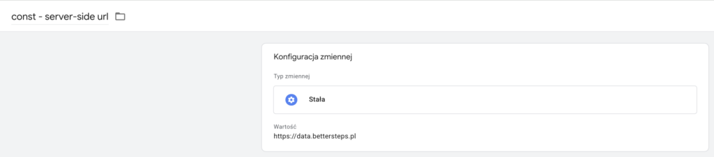 Muszę zadeklarować adres url mojego server tagowania przechowywany w zmiennej const - server-side url.