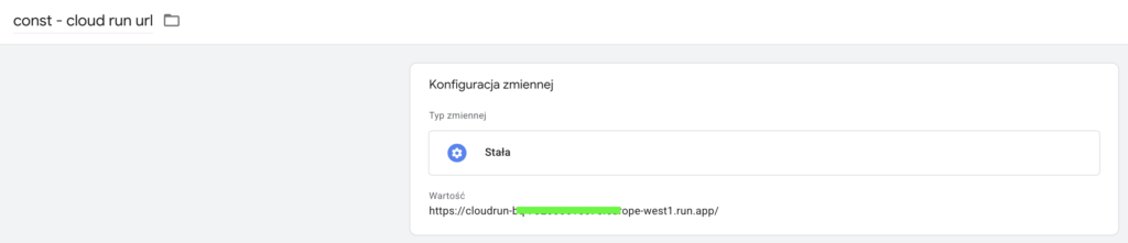 Dla ułatwienia na początek tworzymy zmienną przechowującą adres utworzonej przez nas wcześniej instancji Cloud Run.