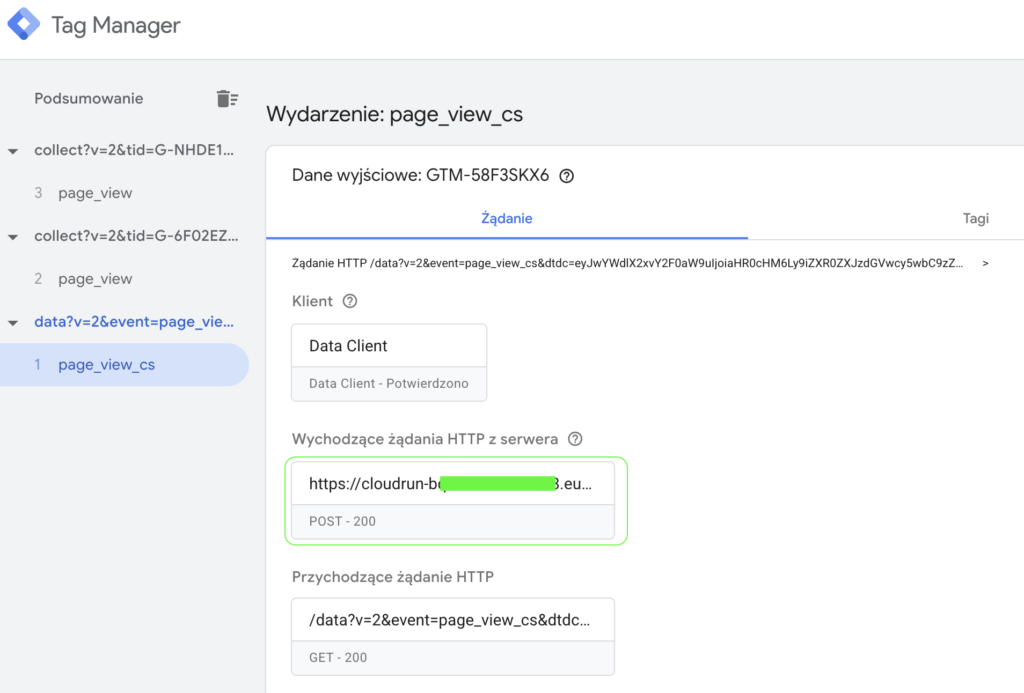To będzie Twój endpoint, który użyjemy w sGTM do wysyłki zdarzeń.