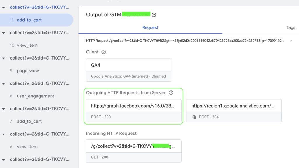 Do naszego serwera tagowania za pomocą tagów GA4 musimy wysłać wszystkie zdarzenia z wymaganymi parametrami, które wcześniej wdrożyliśmy za pomocą pixela.