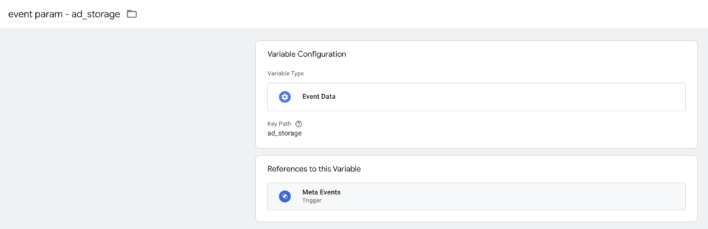 W takiej sytuacji tworzę zmienną w GTM client side przechwytującą status zgody ad_storage i dodaje dodatkowy parametr do obydwu zmiennych konfiguracji.