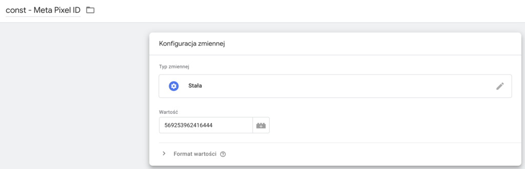 W sekcji Zmienna ustawień konfiguracji wybieramy skonfigurowaną przez nas zmienną.